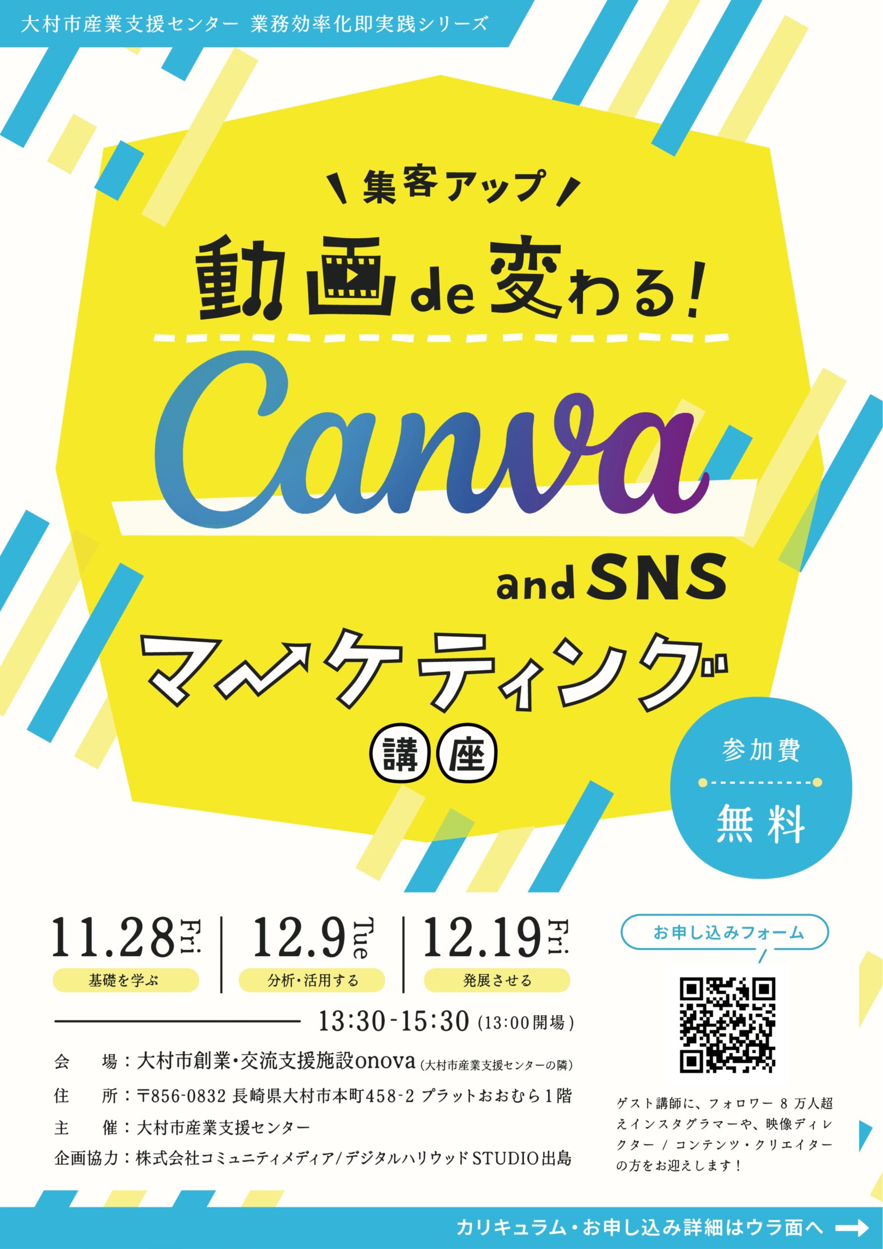 12月にかけて「動画de変わる!Canva and SNSマーケティング講座」全3回を開催
