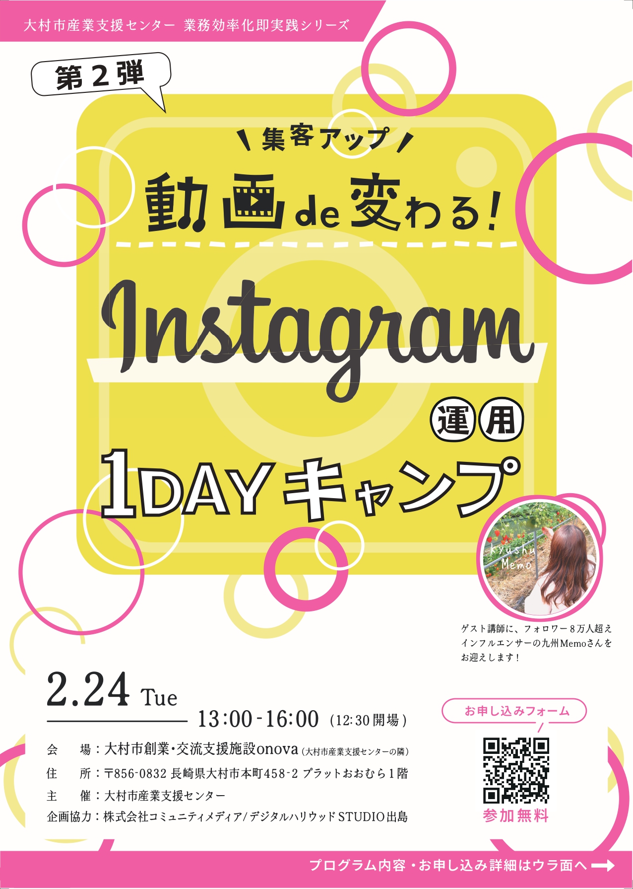 大村市産業支援センターでは、2025年11〜12月にかけて全3回で開催しました『\集客アップ/動画de変わる!Canva and SNS マーケティング講座』をレベルアップし、動画制作に特化した内容で開催いたします。